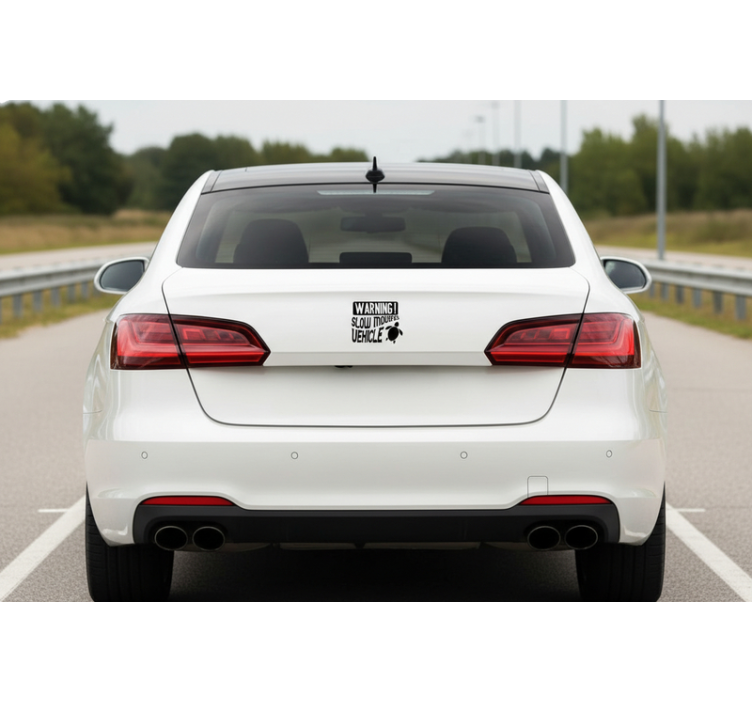 Car sticker warning slow moving vehicle