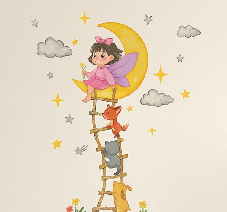 Installing our Childrens' wall stickers moon girl wall decal childrens' wall stickers is a breeze! Simply peel off the backing and stick them onto any flat surface. For best results, ensure the surface is clean and smooth. Our vinyl decals are designed for easy application and can be repositioned without damage, making decorating fun and stress-free!