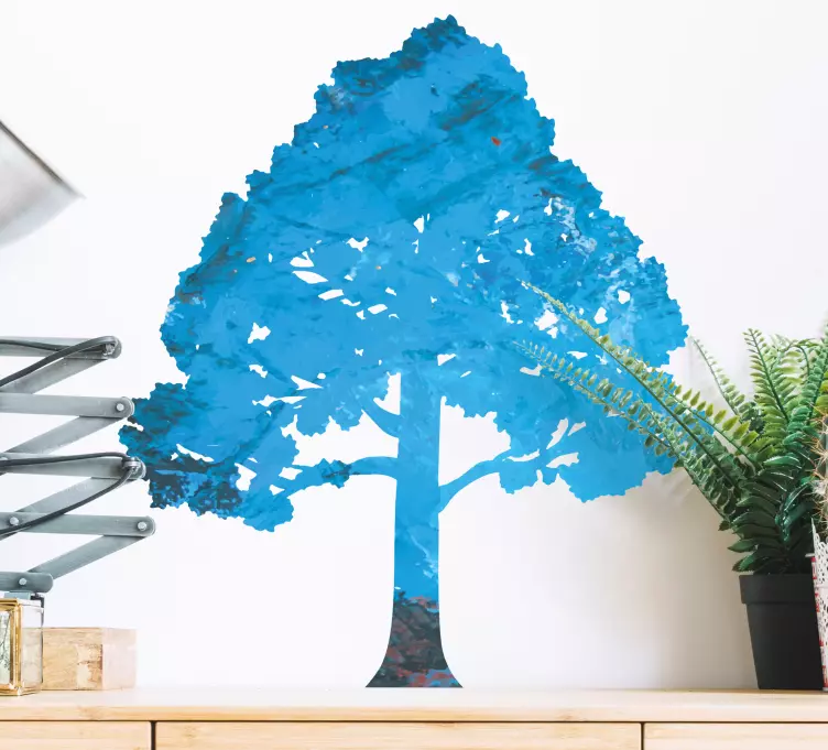 Transform your space with the stunning Cityscape wall decal blue leafy tree, a magnificent design that captures the essence of nature through a vibrant blue silhouette of a tree adorned with colorful leaves. This captivating piece adds a touch of tranquility and liveliness to any room, creating a harmonious balance between urban life and the beauty of nature.
