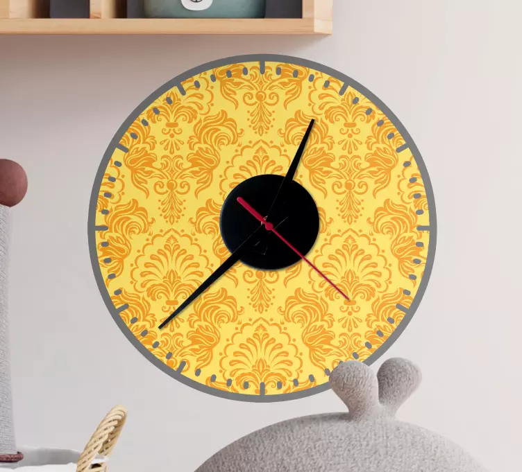 Transform your space with the Clock wall sticker elegant floral timepiece, featuring a stunning damask pattern that effortlessly blends elegance with functionality. This round clock design is adorned with intricate floral elements in a vibrant yellow hue, creating a timepiece that not only tells time but also enhances your decor. The sophisticated aesthetic of this sticker makes it a perfect addition to any room!