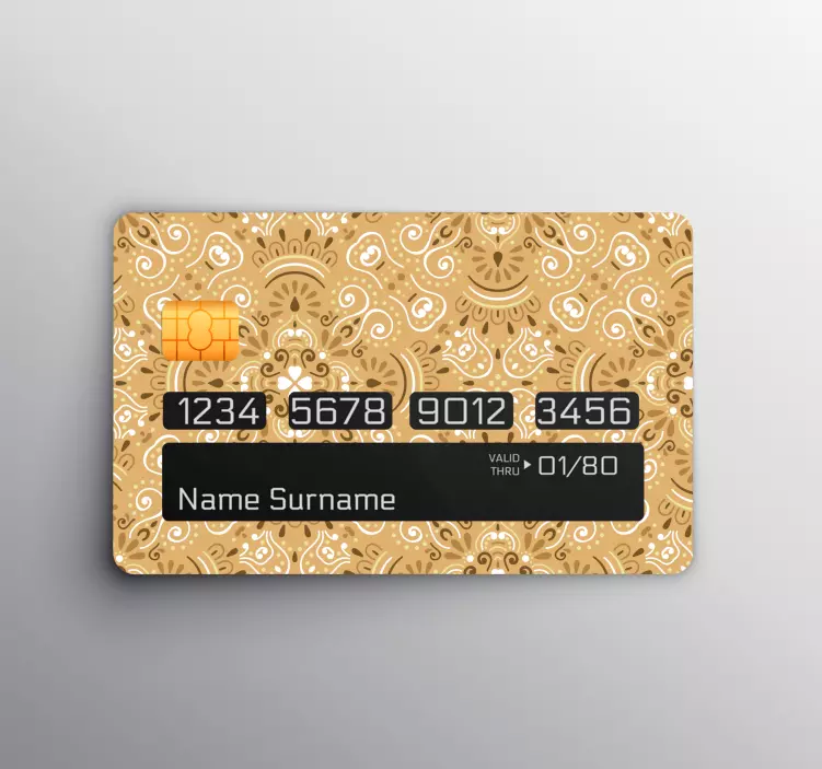 The Credit card sticker ornate card design credit card sticker is versatile, suitable for any flat surface, not just credit cards. Our online store offers high-quality materials with a satin finish that enhances the design and prevents glare. Enjoy a unique look that lasts for years!