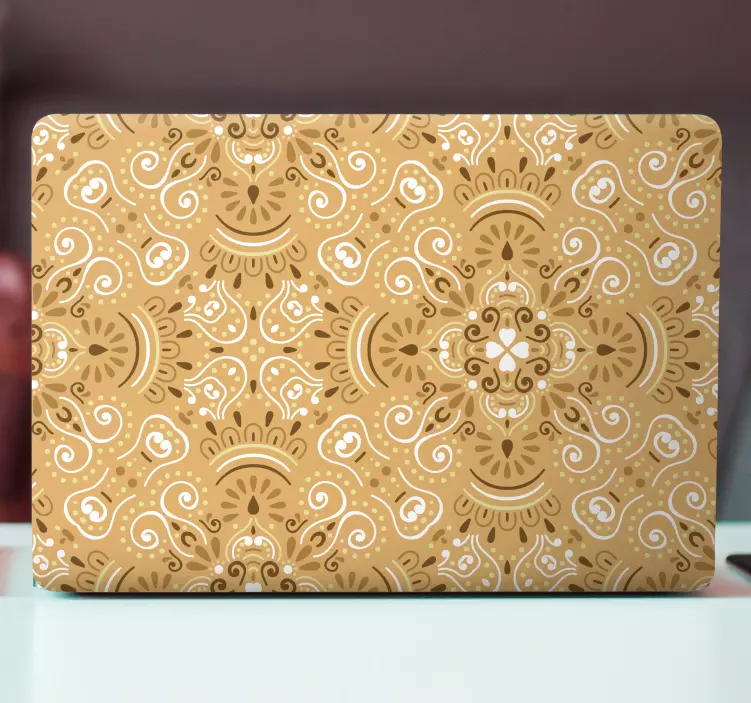 The Elegant Ornate Pattern laptop skin features a stunning design that beautifully combines beige tones with intricate ornamental details. Its captivating pattern showcases swirls and geometric elements, making it a decorative accessory that transforms your laptop into a stylish statement piece!