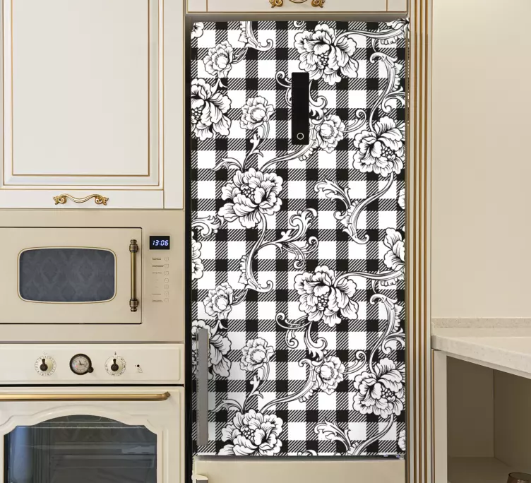 Introducing our stunning Floral wall sticker floral check design, an exquisite blend of floral and checkered patterns that will elevate any space! The elegant black and white design is perfect for adding a touch of sophistication to your fridge or refrigerator, making it a delightful addition to your home decor.