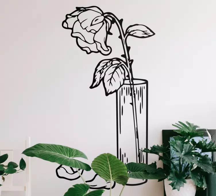 Transform your space with our stunning Flower wall sticker graceful rose arrangement. This exquisite design features a beautifully crafted illustration of dried roses elegantly arranged in a minimalist vase, perfect for enhancing any interior. The combination of glass-like textures and floral patterns creates an inviting atmosphere that effortlessly complements modern decor.