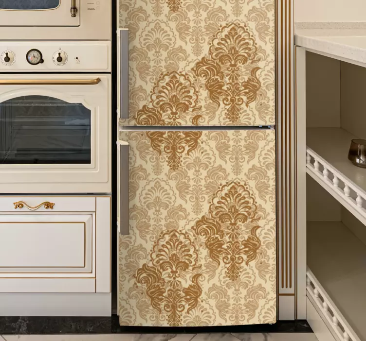 Introducing our stunning Fridge sticker elegant vintage design, a perfect blend of classic charm and modern aesthetics! This exquisite design features intricate ornaments and floral patterns, all adorned with a luxurious golden hue that adds an ornate touch to any kitchen. The ornamental details create a captivating visual experience, making your fridge not just an appliance, but a statement piece!