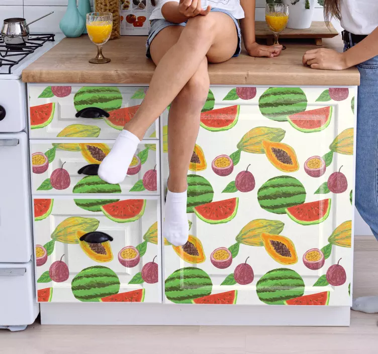 Introducing our vibrant Fruit sticker fruit design creation, a stunning graphic representation that brings the essence of a tropical paradise right into your home! Featuring playful patterns of watermelons, papaya, and lemons, this design is ideal for anyone looking to infuse their space with a colorful, fruity flair. Whether adorning your furniture or brightening up your walls, this eye-catching design is perfect for creating a lively atmosphere.