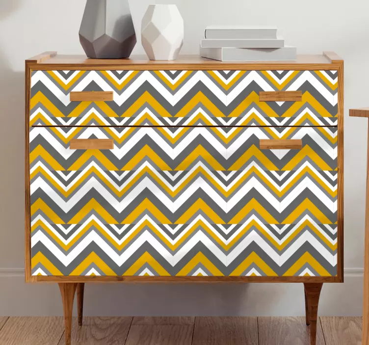 Introducing our stunning Furniture sticker chevron pattern, featuring a modern and vibrant design that effortlessly enhances your living space. This eye-catching sticker showcases a delightful mix of geometric shapes, zigzag lines, and triangles in striking hues of yellow and gray. Perfect for those who appreciate a nordic aesthetic, this furniture sticker brings a fresh and contemporary feel to any piece of furniture, making it an excellent choice for your home decor!