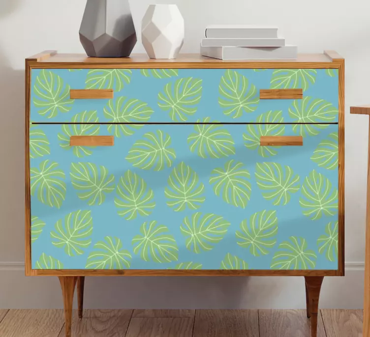 Transform your living space with our stunning Furniture sticker leafy pattern design, featuring a captivating blend of leaves and tropical motifs that bring the essence of nature indoors. The beautiful blue and green hues create a soothing atmosphere, while the intricate patterns offer a decorative touch to your furniture. This design is perfect for those looking to elevate their decor with a fresh, vibrant look!