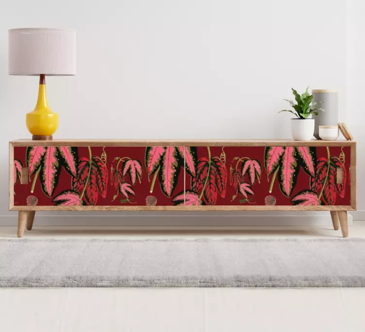 Transform your space with our stunning Furniture sticker lush leaf design, featuring a vibrant maranta-inspired illustration. This captivating floral pattern showcases rich green, red, and pink hues, bringing a touch of natural flora into your home. Perfect for adding a unique furniture accent, this design effortlessly enhances any decor style with its lively and refreshing aesthetic!