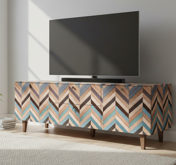 Reference: A54874Transform your space with our Furniture sticker multicolor wood herringbone pattern! This stunning design features a vibrant array of colors beautifully arranged in a classic herringbone layout, perfect for adding warmth and elegance to any room. The rich wooden texture combined with the multicolor scheme creates an eye-catching element that is sure to delight guests and enhance your home decor.