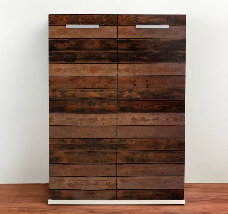 Transform your living space with our Furniture sticker rustic wooden cabinet design, showcasing a stunning graphical representation of brown horizontal planks that evoke a natural, rustic charm. The textured wood effect brings the warmth of the countryside into your home, making it an ideal choice for those seeking an inviting and cozy atmosphere.