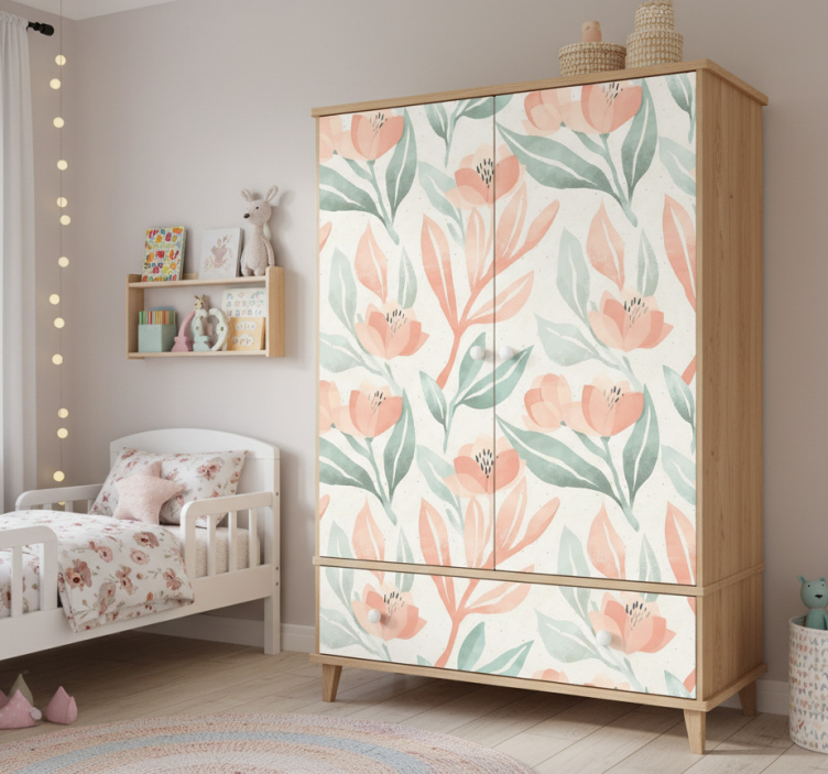 Our products are manufactured with a satin finish that ensures no reflections from interior or exterior light, while providing excellent color intensity. The Furniture sticker soft watercolor flowers can be easily cleaned with a damp cloth and a little neutral soap. With a grammage of 80 microns, built-in adhesive, and a durability of about 8-10 years, this sticker is both resistant and washable. Enjoy custom measurements tailored to your space, and let your creativity shine!
