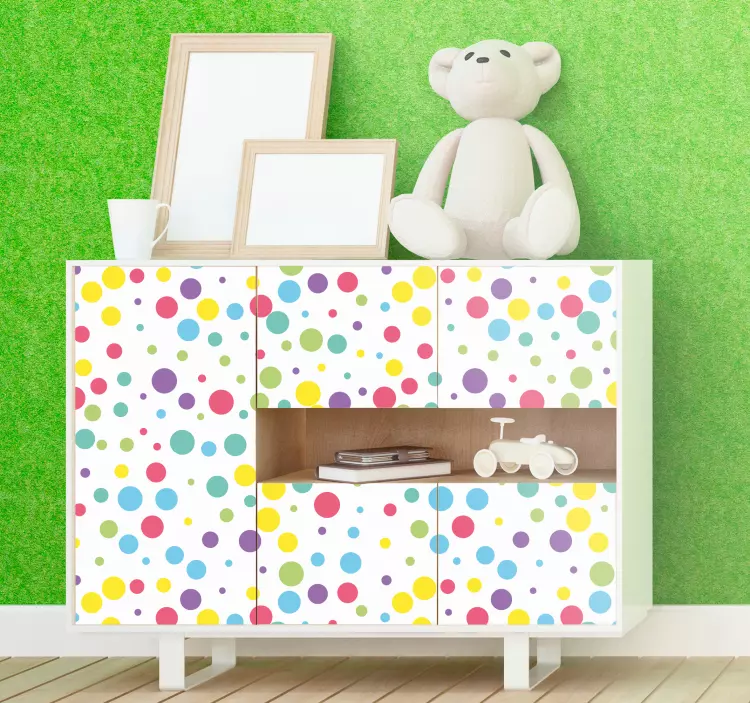 Transform your space with our Furniture sticker vibrant dot pattern. This stunning design features a playful array of colorful polka dots that bring a sense of joy and creativity to any room. The geometric shapes and vibrant colors create an eye-catching focal point, making it a perfect choice for those looking to enhance their furniture design. This delightful furniture sticker is not only visually appealing but also versatile, allowing you to express your personality through decor!