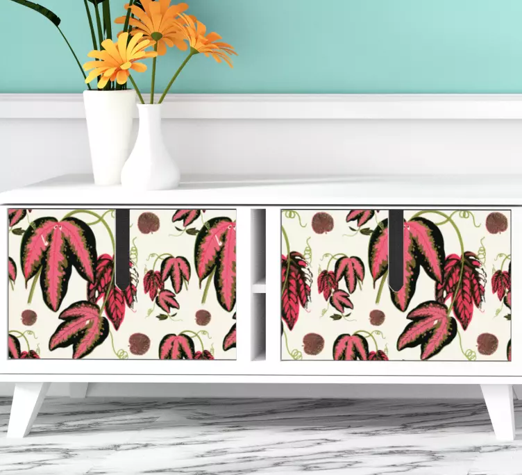 Transform your living space with our stunning Furniture sticker with leafy pattern design. This beautiful illustration showcases a vibrant leafy pattern inspired by the tropical maranta plant, bringing a touch of botanical elegance to your furniture. The colorful design is both decorative and natural, creating a refreshing atmosphere that breathes life into any room!