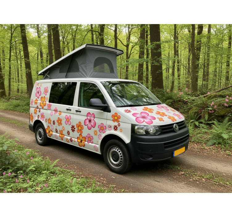 Reference: A53864Transform your campervan into a vibrant haven with our Happy colorful flowers campervan decal! This eye-catching design features a delightful array of cheerful flowers, creating a joyful atmosphere that brightens up any journey. The rich colors and intricate details promise to captivate your spirit and bring a smile to your face every time you hit the road!