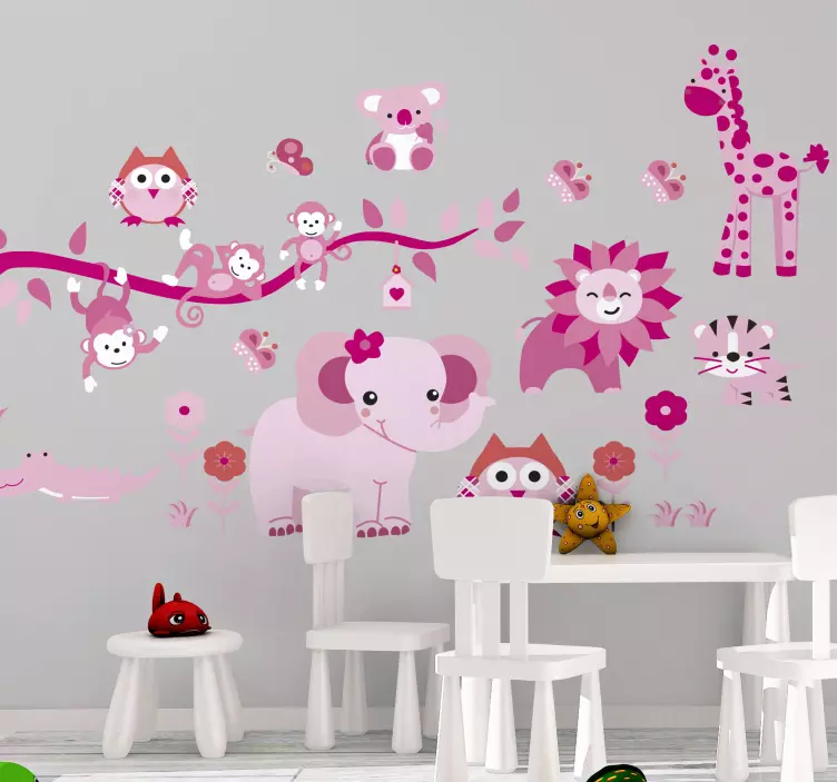 Introducing the Kid's sticker cute animal collection, a delightful assortment of whimsical jungle animals designed to bring a splash of color and joy to any child's space! This enchanting collection features playful cartoon illustrations in vibrant pinks, showcasing a variety of wild animals that will surely spark your child's imagination. Each sticker is a decorative masterpiece that transforms ordinary walls into a lively jungle adventure!