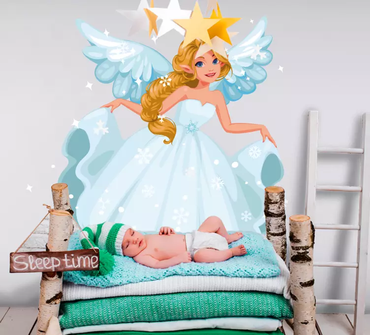 Bring a touch of magic to your child's space with our enchanting Kid's sticker fairy with wings. This whimsical design features a delightful fairy adorned with delicate wings, surrounded by sparkling snowflakes. Perfect for igniting the imagination, this sticker embodies the essence of fantasy and childhood wonder, making it a charming addition to any playroom or bedroom!
