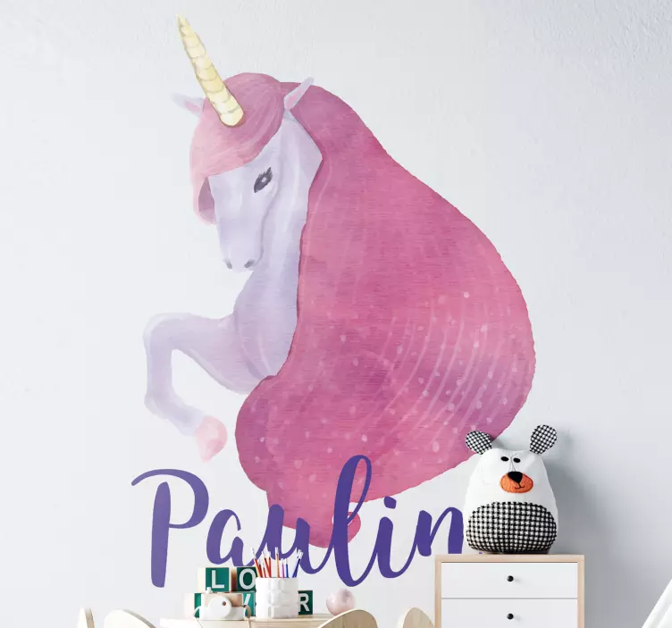 Introducing our enchanting Kid's sticker unicorn design art, a delightful creation that captures the imagination of children! This vibrant design features a whimsical unicorn surrounded by a playful watercolor backdrop, making it the perfect way to personalize your child's space. Each sticker can be customized with a custom name, adding a unique touch to your decor. Bursting with color and charm, this personalizable art piece is sure to brighten any room!