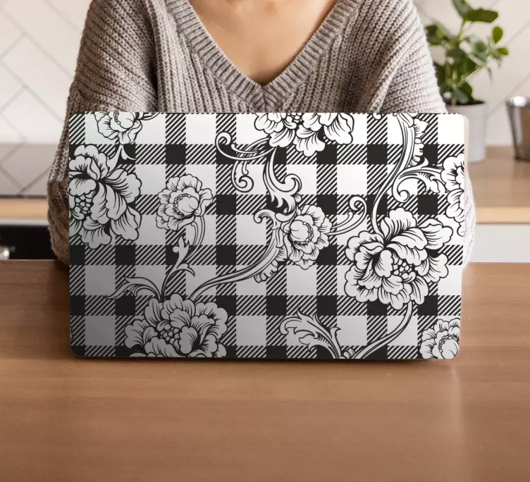 Laptop skin floral checkered pattern