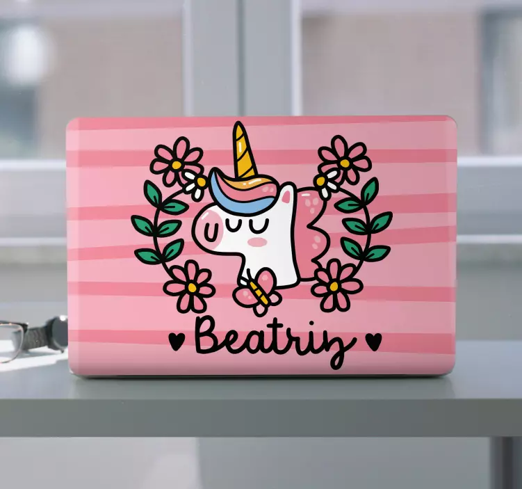 Laptop skin unicorn floral design