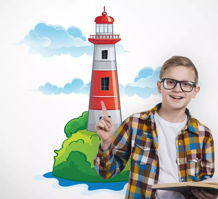 Discover the enchanting Location sticker lighthouse on island, a stunning design that captures the essence of the sea and nature! This beautiful illustration features a majestic lighthouse standing proudly on an island, surrounded by serene waters, fluffy clouds, and the vibrant beauty of the marine landscape. Ideal for those who appreciate nautical themes, this artwork will bring a breath of fresh air into any space!