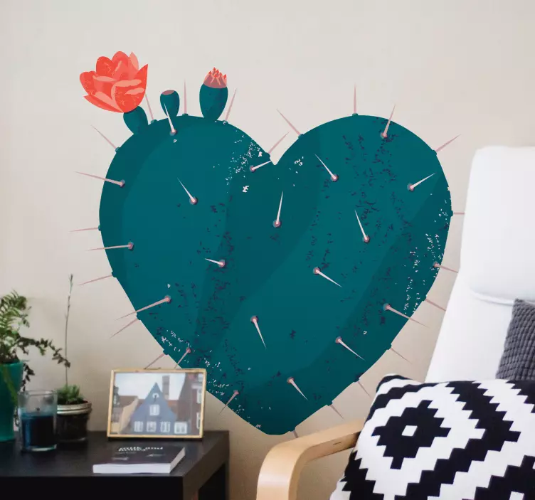 Transform your space with our delightful Nature wall sticker heart-shaped cactus! This stunning design features a beautiful heart shape intertwined with a charming cactus, complete with intricate thorns and pink flowers that evoke a sense of nature's vibrant beauty. The illustration brings a unique touch to any room, creating a warm and inviting atmosphere that celebrates the wonders of plants.