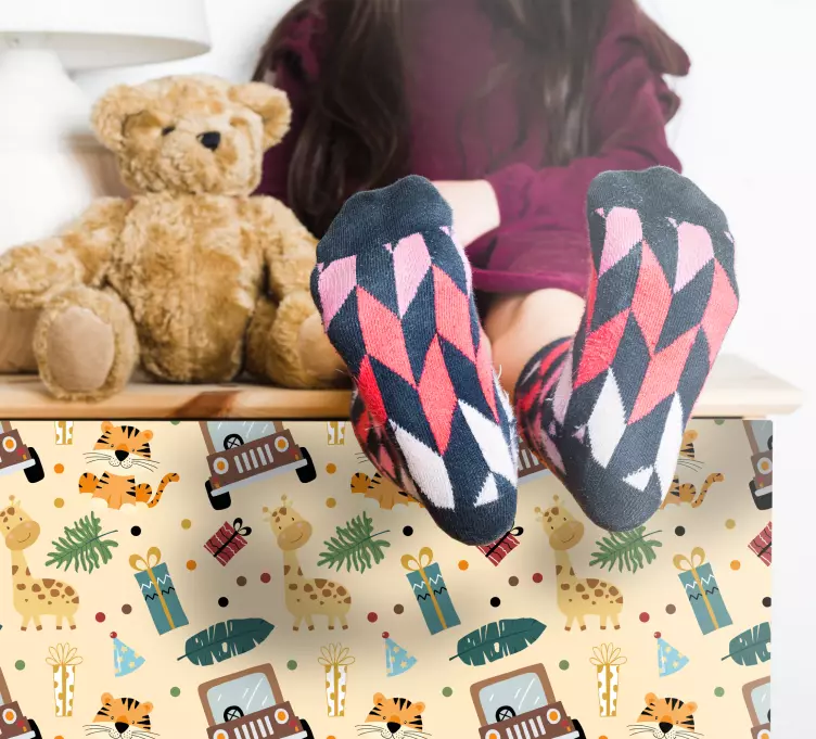 Transform your child's space with our Nature wall sticker playful safari elements, featuring a delightful design that brings the charm of the safari right into your home! This vibrant wall sticker showcases cartoon animals like a playful giraffe and a majestic tiger, all set against a backdrop of nature and adventure. With whimsical patterns and elements like a jeep, it’s perfect for adding a splash of fun to furniture and decor, making it an ideal gift for children!
