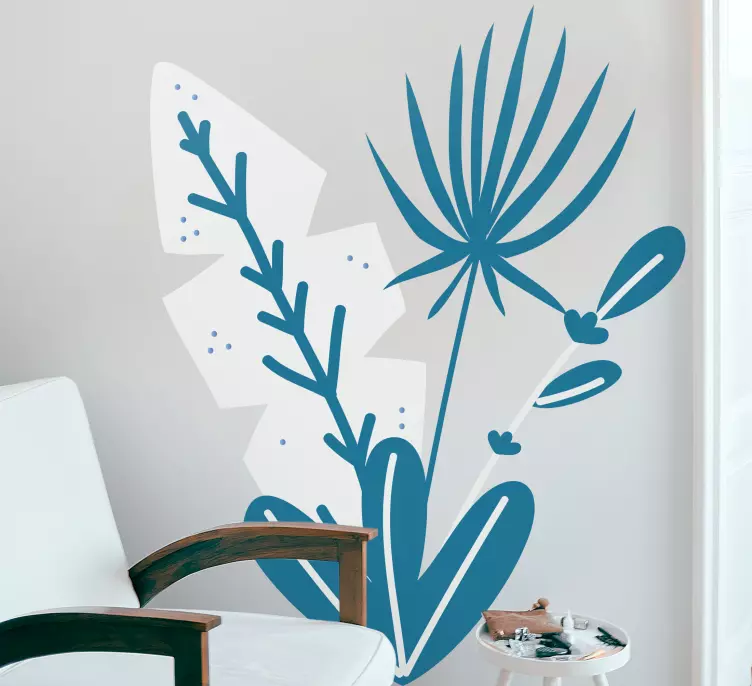Reference: A48034A stylish composition featuring various plant shapes, integrating bold lines and soft curves. This design emphasizes natural beauty, combining tropical elements with a modern aesthetic, perfect for liveliness in any setting.