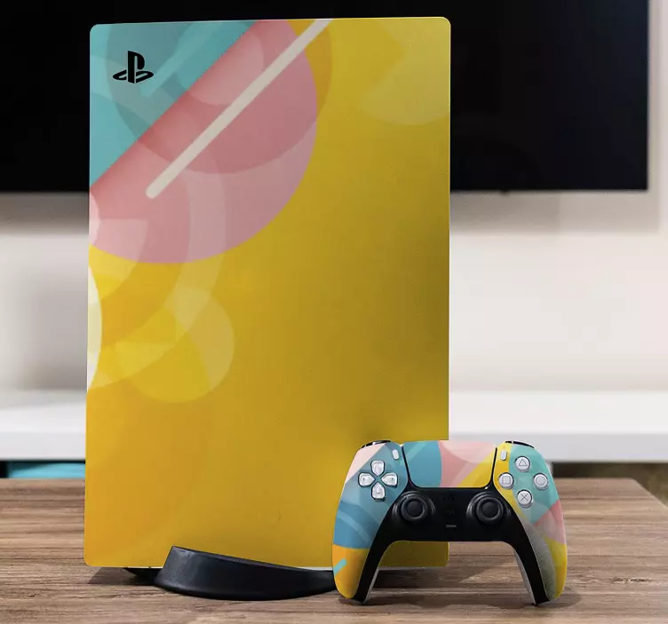 Elevate your gaming experience with our stunning Ps5 skin in vibrant color designs. This graphic sticker features an eye-catching abstract geometric design that bursts with vivid colors, especially yellow, making it a perfect addition to your PlayStation 5. Transform your console into a work of art while enjoying the intense color depth and satin finish that prevents glare, ensuring you can admire your style in any lighting!