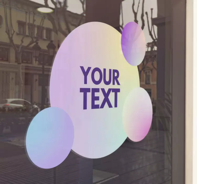 Transform your space with our stunning Shop window sticker customizable text circles! Featuring a vibrant gradient of colors, this fluid and abstract design showcases geometric shapes that will instantly elevate your shop window. With the ability to add your own custom text, these customizable stickers create a colorful and modern look that draws attention and captivates customers.