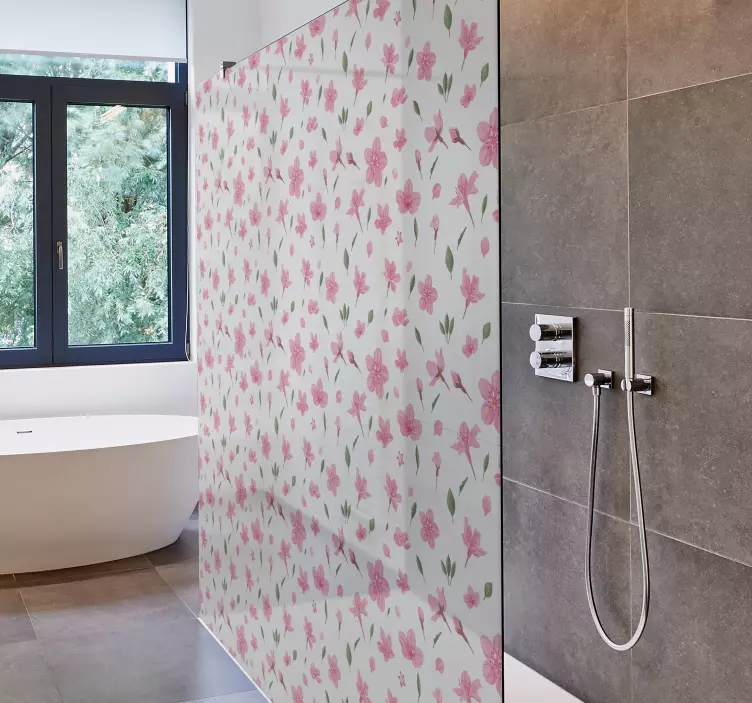 Transform your bathroom into a tranquil oasis with our Shower screen sticker botanical design creation. This stunning design showcases a beautiful watercolour pattern featuring pink floral elements that celebrate the beauty of nature and botanical artistry. The elegant flowers dance across the surface, creating a refreshing atmosphere that enchants every shower experience!