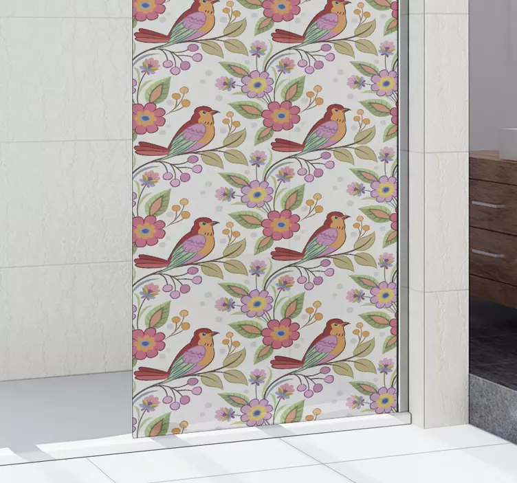 Transform your bathroom into a vibrant sanctuary with our Shower screen sticker colorful birds design. This stunning design features a lively arrangement of colorful birds amidst a backdrop of beautiful flowers that captures the essence of nature. The intricate pattern of lively hues will not only enhance your shower screen but also bring a refreshing touch of serenity and joy to your daily routine!