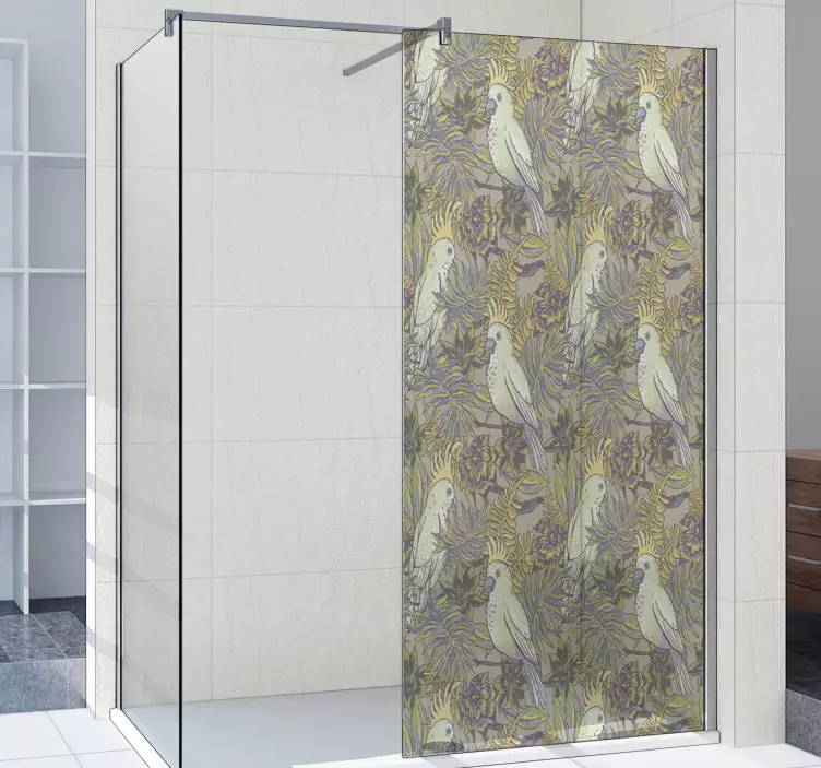 Transform your bathroom into a serene oasis with our Shower screen sticker with elegant bird designs. This exquisite design features vibrant parrots gracefully perched among lush leaves and blooming flowers. The captivating nature theme showcases an array of birds and floral patterns, adding an element of elegance and tranquility to your shower space!