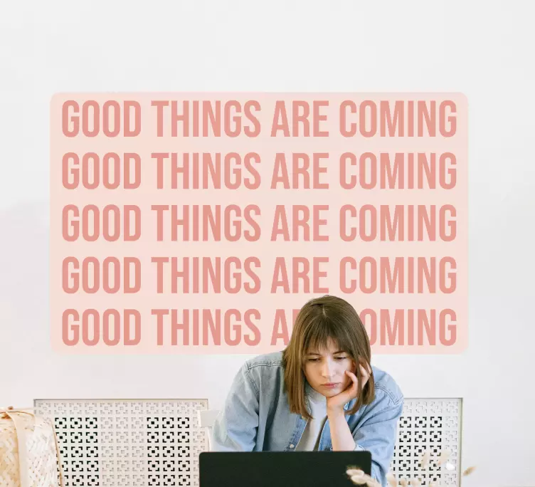 Reference: A48437The design features an uplifting phrase emphasizing optimism and resilience. Its repetitive nature reinforces the message, creating a comforting and encouraging atmosphere. Ideal for spaces that foster positivity, it serves as a reminder that good things are on the horizon.