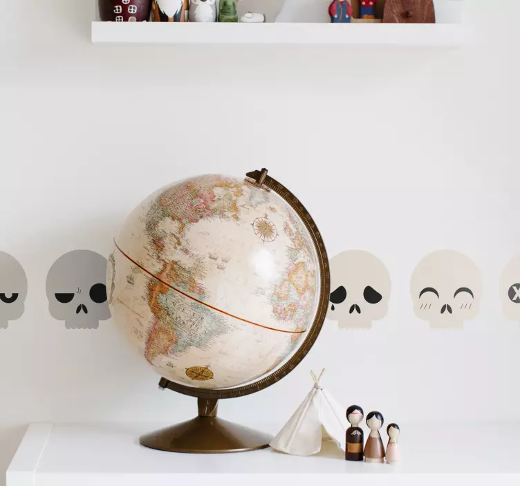 Reference: A47213A charming assortment of playful skull faces, each showcasing unique expressions. The design evokes a sense of fun and character, making it an engaging addition to any space. These whimsical figures can add personality and a hint of mischief, perfect for children's rooms or playful environments.
