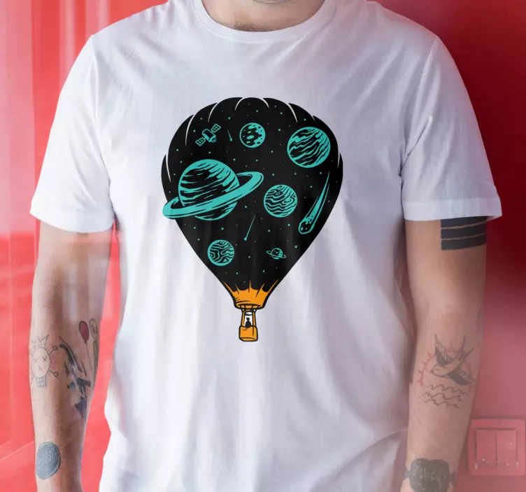 Embark on a whimsical journey with our Adventure through space t-shirt, featuring a stunning graphic design that captures the essence of exploration. Imagine a vibrant hot air balloon drifting among colorful planets in a cosmic landscape, inviting you to travel through the wonders of space. This conceptual illustration is perfect for those who dream of adventure and love to express their playful side!