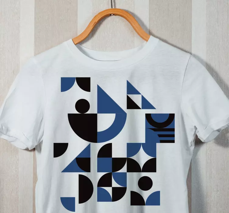 Introducing our stunning Geometric patterned t-shirt, a fashionable blend of modern art and comfort! The design features an eye-catching array of geometry and geometries that come together in a stylish abstract illustration, resembling a captivating puzzle of shapes. The striking combination of blue and black makes this t-shirt a must-have addition to your wardrobe for those who appreciate geometric patterns and love to stand out!