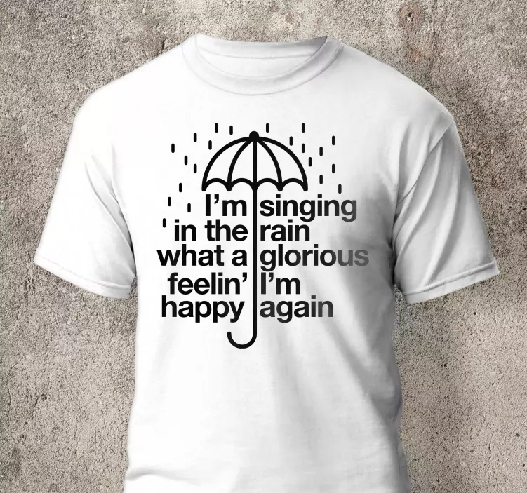 Introducing the Happy rainy umbrella quote t-shirt, a delightful piece of wearable art that combines a vibrant umbrella design with cheerful rain motifs and uplifting lyrics. This t-shirt captures the essence of joy and positivity, making every rainy day feel glorious! The heartwarming text and playful graphics express a feeling of happiness that is sure to brighten your mood.