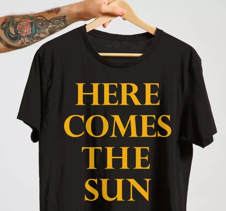 Brighten your wardrobe with our Here comes sunshine t-shirt, a modern and stylish piece designed to uplift your spirit! Featuring bold graphics that blend lyrics about sunshine, a captivating sun illustration, and vibrant yellow text, this shirt embodies a motivational vibe. Perfect for music lovers and those who appreciate a touch of creativity, it’s a unique statement piece that showcases your personality while keeping you comfortable and fashionable!