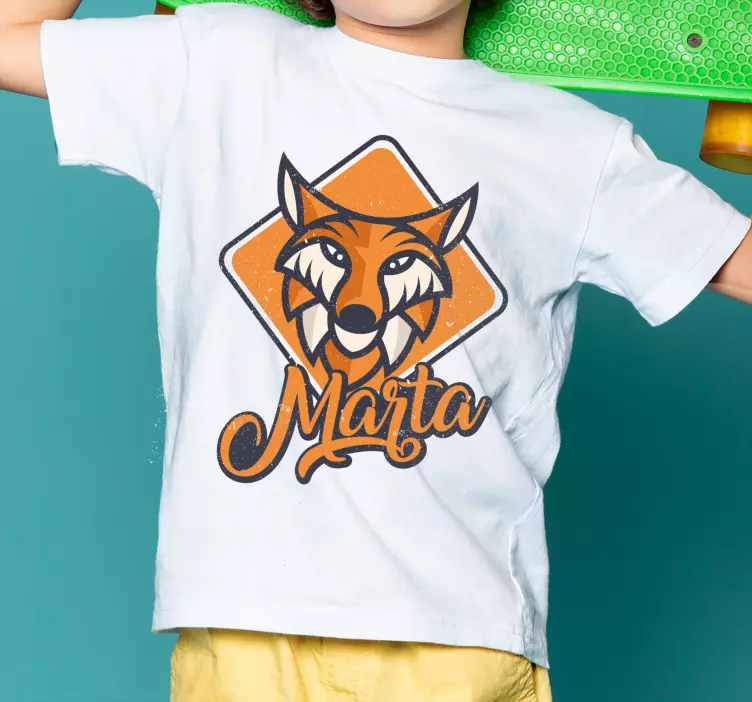 Reference: T4980This captivating design features a striking fox illustration with bold colors and playful elements, personalized with the name 'Marta'. Perfect for kids, it combines fun and creativity, making every piece unique and special.
