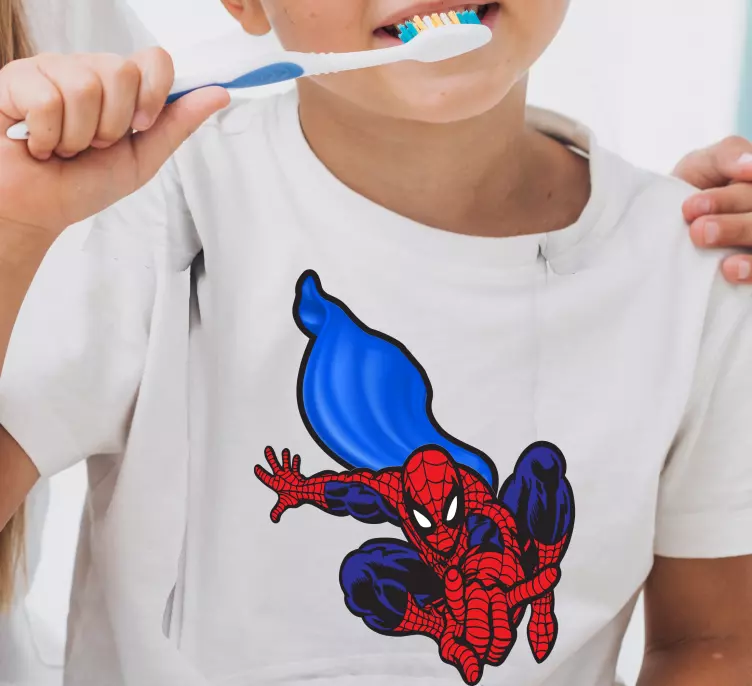 To keep the Kids t-shirt spider hero adventures kids t-shirt looking vibrant, simply machine wash it at 30 degrees. For best results, iron the t-shirt inside out or use a barrier cloth over the design. This care will ensure that the fun illustration remains bright and intact for all their adventures!