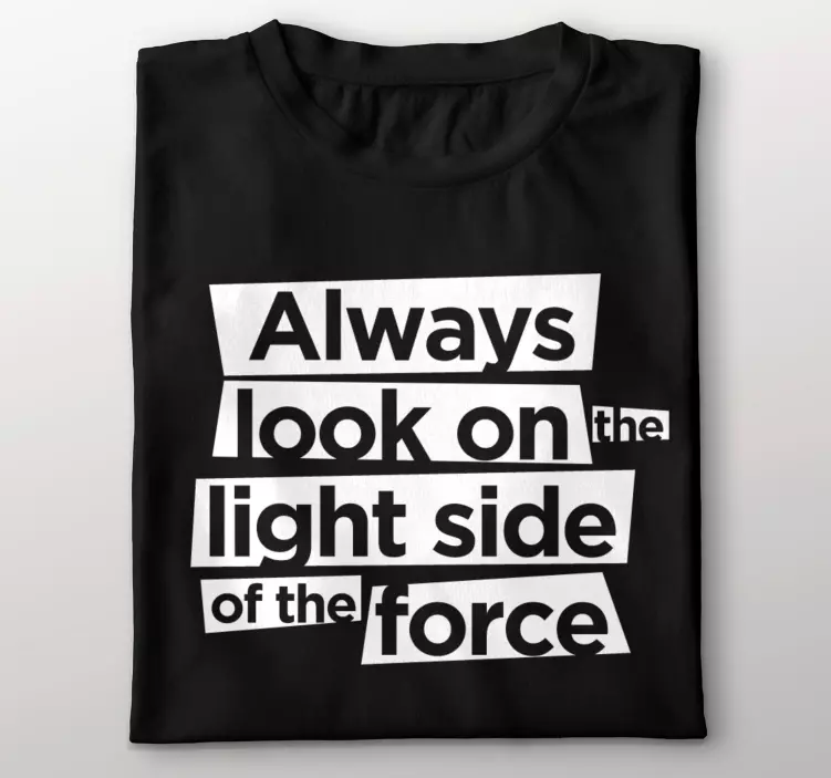 The Light side always t-shirt features a striking design that combines motivational quotes with a touch of humor. The sleek monocolor scheme in black or white emphasizes the bold message: always force your positivity and embrace the light! This shirt is perfect for anyone looking to spread motivation while staying stylish.