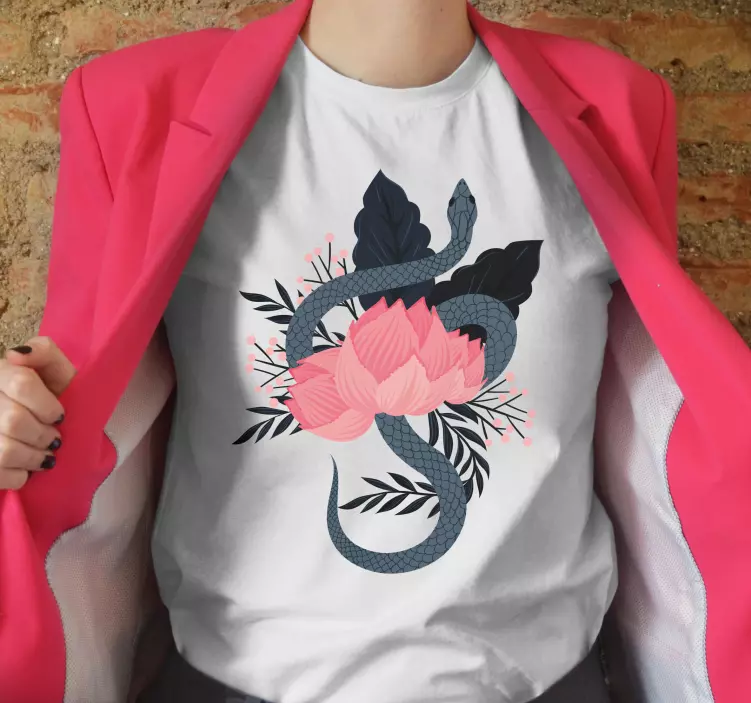 Embrace your unique style with our Snake and flower motif t-shirt! This t-shirt is not just a piece of clothing; it's an expression of your personality and love for nature. With its eye-catching design, you’ll feel confident and inspired every time you wear it. Perfect for casual outings or simply lounging at home, this t-shirt is a versatile addition to your wardrobe that stands out and turns heads!
