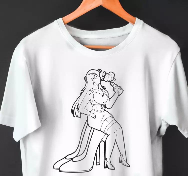 Introducing our Stylish high heel vibe t-shirt, featuring a stunning hand-drawn illustration that embodies confidence and fashion. This unique design showcases a woman’s silhouette complemented by high heels, elegantly smoking a vape. The sketch captures a cocktail vibe, making it a perfect piece for those who love to express their stylish flair!