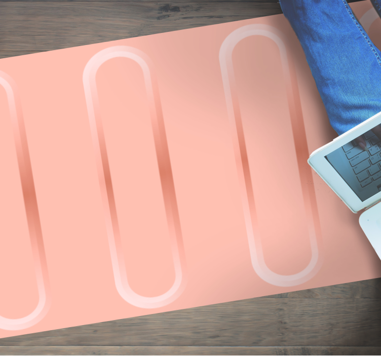 The Abstract Geometric Lines textured vinyl rug features a stunning design that is graphically shaped, with geometric patterns and a 3D effect. In soft pastel shades of pink and coral, the abstract lines create a visually striking addition to any space. This unique vinyl rug is perfect for adding a touch of modern style to your home!