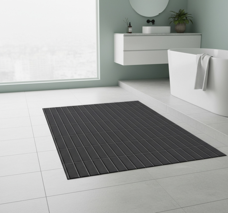 Reference: R23288Transform your bathroom into a stunning oasis with our Bathroom vinyl rug black tile 3d wallpaper. This exquisite design features a captivating 3D tile effect that brings depth and elegance to your space, making every step feel luxurious. With its easy-to-clean surface, anti-slip properties, and scratch resistance, this bathroom vinyl rug is not just a decorative piece but a practical addition that protects your floors while elevating your decor.