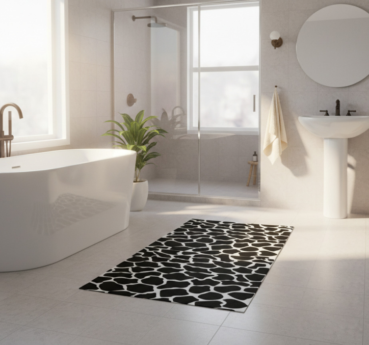 The Giraffe print bathroom vinyl rug is not just a floor covering; it’s a statement piece that elevates your bathroom decor. Its unique design draws attention and sparks joy, creating an inviting atmosphere. This bathroom vinyl rug complements various styles, from modern to rustic, ensuring your space feels cohesive and stylish. Let this rug be the focal point that ties your bathroom together!