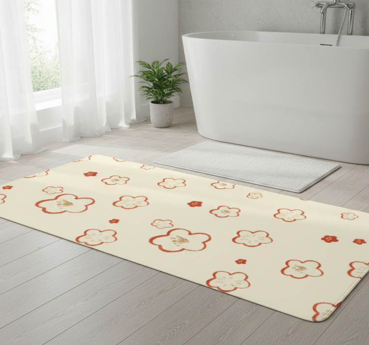The Bathroom vinyl rug in red and cream daphne pattern bathroom vinyl rug is not just a practical addition; it’s a statement piece that enhances your bathroom's aesthetic. Imagine stepping onto a vibrant rug that not only protects your floor but also adds a splash of color and personality to your space! This rug is perfect for those seeking an affordable way to refresh their décor with style and flair.