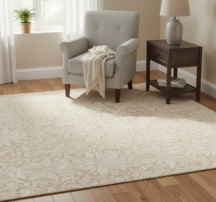 Bedroom vinyl rug classic beige floral design