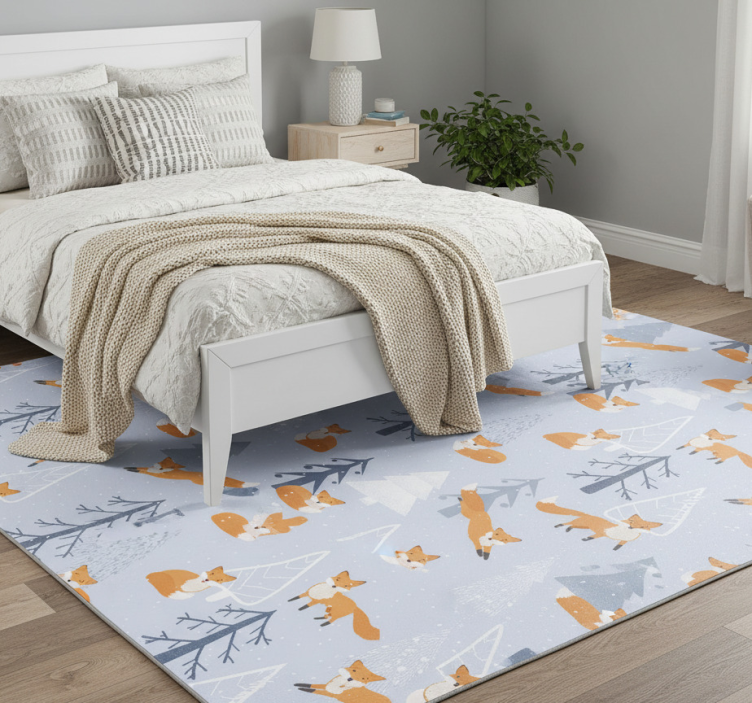 Bedroom vinyl rug with cute fox winter forest design